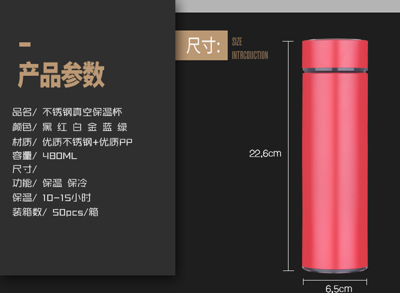 500ml直杯一件代發商務款保溫杯車載杯304不銹鋼真空水杯定制logo