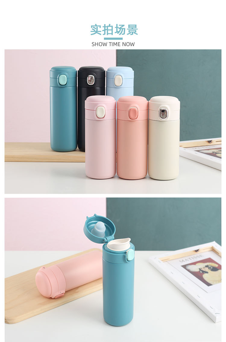 新款彈跳鎖扣不銹鋼真空雙層保溫杯豌豆杯子禮品定制水杯批發(fā)