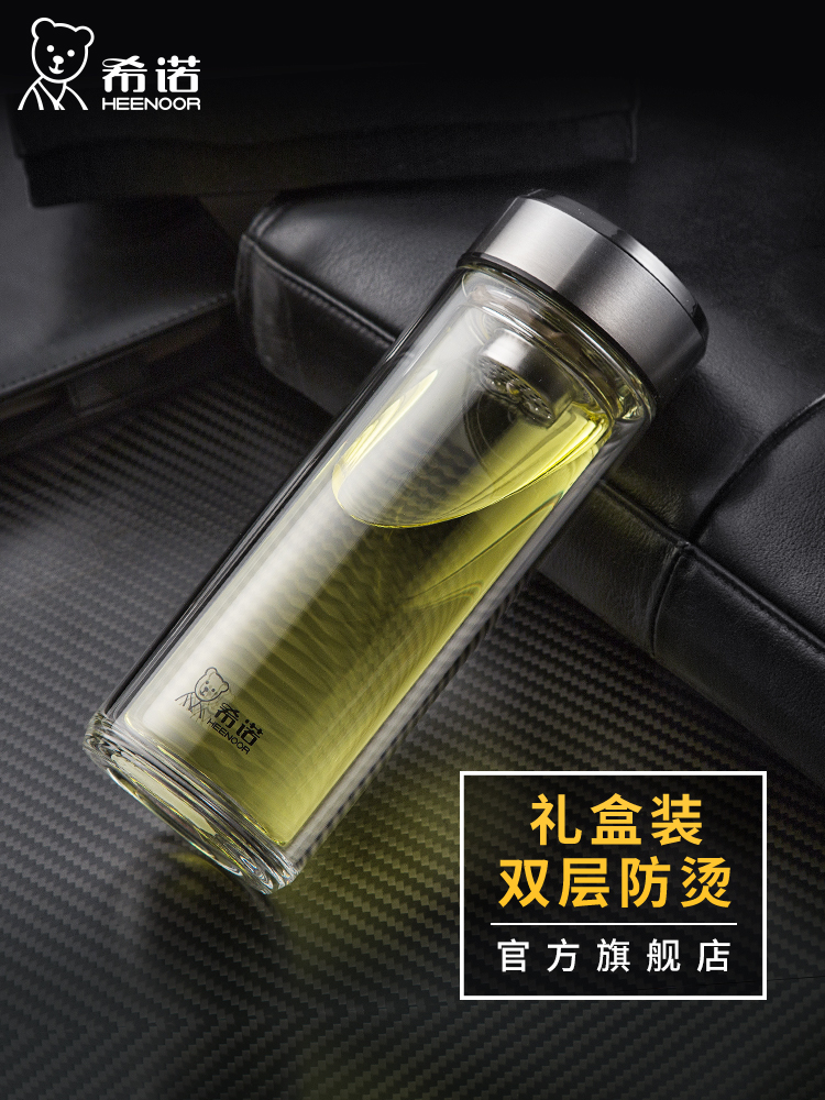 希諾雙層玻璃杯茶水分離水杯男家用透明過濾泡茶杯子高檔送禮商務